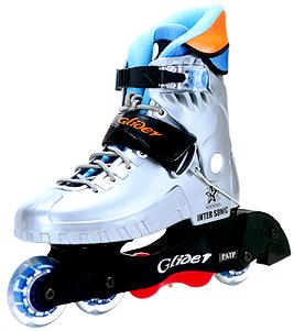 The GLIDER is a new concept in the world of aggressive skating. It is a fully functional in-line skate with a special GLIDER wheel which allows for sideways skating maneuvers and trick on pipes, rails and other edged surfaces. The potential for entirely new trick and stunt options shall diversify And reinvigorate the sport of in-line skating. Ultimately, the GLIDER Will greatly broaden the in-line skating market by introducing a "surf-like" effect to the world of skating. |