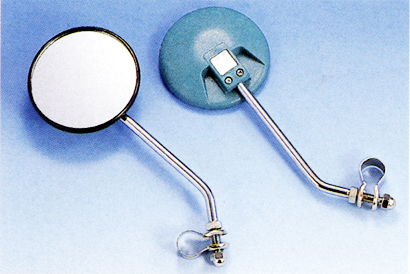 3-1/2" plastic round, clear blue 8 mm x 7-1/8" steel stem, with clip Special Features: Can be use as left side or right side mirror Packing: Plastic bag/PCE Color Available: Clear Blue or Black