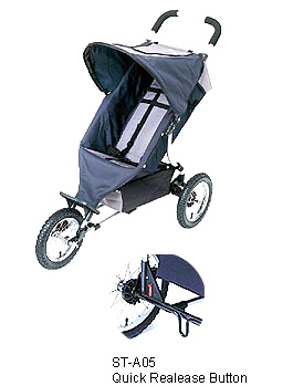 FEATURES: Aluminum frame Steel wheels Steel hub Machine-washable 600D PU fabric 120 degree seat back Air-filled rubber tires(12"X12") 5 point harness seat belt Retractable canopy with see-thru window Multi-position sun shade Safety wrist strap Foot brake Fast, compact folding Steel hand brake |