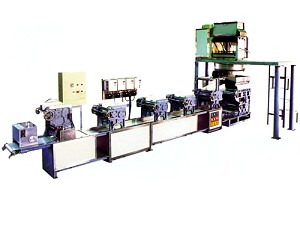 1. The first noodles-producing machine controlled by micro-computers in Taiwan. 2. Abling to adjust the thickness of the noodles easily from both Noodle sides to get any exact thickness you want. 3. Stainless Steel shelf cover keeps the outlook as new as always. 4. The operations between wheel sets are automatically controlled by electric frequency meter and electric eyes. 5. Capacity: Spring Noodle-324kg/h, Cooked(Oil) Noodle-612kg/h. |