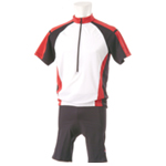 Style No. : SBS-803 Item : Bicycle suit Shell Material : 92% Nylon 8% Lycra Tops and shorts.Half open with zipper in tops Size : S / M/ L/ XL/ XXL Color : Assorted