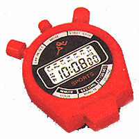 Sport watch w/digital alarm display & chronograph Display hour, minute, second and weekday Resolution: 1/100 sec. Maximum counting period: 23 hr 59 min. 59sec.