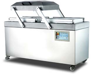 Fully stainless steel construction. Platen type table ensures easy cleaning and product handling - without space restriction. Two vacuum chambers configuration permits alternative operations for one operator. To decrease waiting time of opening the cover for upgrading packaging efficiency. Highly efficient European vacuum pump. 10 programmable memories setting system, individual display provides easy reading and operating. Equipped with casters with brake for easy moving. Microcomputer control system & electrical panel are waterproof. |