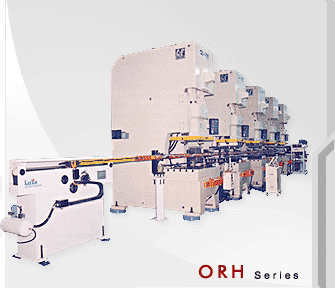 The ORH series transfer robot has a wide application in most of sheet metal stamping industry, such as computer, TFT-LCD monitor, electronic products, auto parts etc. Both of the feed axis and lift axis are driver by AC servomotors. The feed speed could up to 200M/min max. with excellent stability and accuracy. The feed pitch can be tailor-made according to the center distance of two presses or die stages. To provide on-line tapping or parts turnover function, a multi-spindle tapping machine or turnover device (optional) can be setup between two presses. |