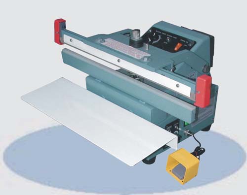 | The FUA model sealer differs from our regular sealers by reversing the sealing element to the upper jaw and the silicon rubber to the lower jaw. This makes it possible to protect the element from moisture and contamination. Makes a clean and secure seal. FUA is designed for the continuous sealing of thermoplastic films such as polyethylene and polypropylene. Controlled by a plug-in transistorized circuit board, electronic timers and the uniform pressure provided by an electromagnet. These models eliminate operator error in the sealing operation. Once the correct control settings have been programmed, consistent seals are maintained automatically, making the last seal as perfect as the first. This sealer is ideal for sealing operations in packaging candies, food, stationary, drugs, tools, replacement parts and a variety of other products. Includes an electric pedal for manual operation. |