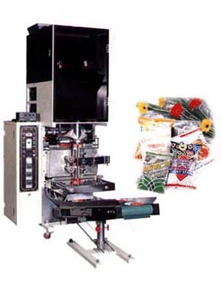 This machine is PLC controlled ensuring superior bag forming accuracy. Micro-computer weighing system ensures accurate filling. This unit can be equipped with one or two sets of the computerized weighing devices depending on the product to be packed and the packing speed. Machines can be made to customers' own specifications on request. Photo-cell controlled Printing Points Tracing System ensures extremely accurate bag forming, sealing and cutting performances. The sealing and cutting operations are air cylinder activated for fast, highly efficient operations. The air cylinder components are high quality Japanese and German imports. This unit can perform pillow type packaging. The entire procedure from weighing, bag forming, filling and sealing to cutting and packaging is fully automatically operated. Date coder available on request. Convenient package size & packing speed are adjustable. Adjustment can be made while the machine is running. Product out-feeding can be furnished with an optional outfeed conveyor for convenient product collection. |
