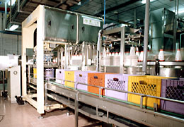 The packer has given excellent service in handing glass bottles and plastic bottles packing into the case. It combines intelligence automatic arrangement bottles infeed, bottles accumulating / marshalling, bottles gripping and packing ( match the case conveyor to keep the bottles packing into the case correctly ) action. The mechanism construction is very simple, the supporting structure is robust and durable and the profile is square and artistic. The electric control cabinet is fitted with PLC programmable logic to control all the mechanical actions and houses the PC with monitor that can indicate the present working conditions and the trouble problem, then it can easy to eliminate the breakdown. Under the perfect mechanism construction and design simple and match all the electrical automatically control that makes this packer operation very easy and let your production line is very efficiency. |