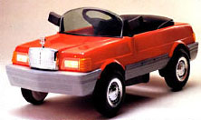 TD-500 B/O CAR SHELL A.B.S. IMPACT BODY. I.C. MUSIC OPERATED BY HORN. HEAD & TAIL LIGHTS REALLY WORK. WITH 6V 8AH BATTERY AND ADAPTOR. MAX. LOADING WEIGHT: 25KGS/55LBS. SIZE: 38" x 16" x 15-1/2" PACKING: 1 SET/CTN/3.3'