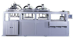 Direct-Hot-Press (press to dry) technology, no drying oven needed Dimension: 5,050 mm (L) x 2,100 mm (W) x 2,600 mm (H) Stainless steel molding/forming unit and tank 180¢X single sided rotational molding/forming unit One (1) molding/forming platen and five (5) transfer platens Three (3) 2-dimensional pneumatic-cylinder-driven upper transfer platens Two (2) fixed lower transfer platens Effective molding/forming area: 1,200 mm (L) x 800 mm (W) x 250 mm (H) Automatic jet water cleaning system Maximum productivity: Three (3) cycles/minute Maximum power consumption: 144 kW (193 HP) TFT touch-panel user interface |