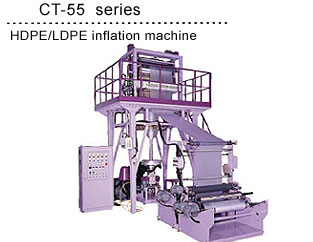 CT-H55 CT-L55 Material HDPE LDPE/LLDPE Film width 700 mm 1000 mm Film thickness 0.008-0.08 mm 0.02-0.15 mm Film output 75 kg/hr 90 kg/hr Screw dia. & L/D 55 mm, 28: 1 55 mm, 30: 1 Main motor AC30 HPx6P AC30 HPx6P Roller width 800 mm 1100 mm Take up speed 30-100 m/min 10-60 m/min