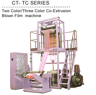 CT-TC25 CT-TC35 Material HDPE/MDPE HDPE/MDPE Film width 400mm 550mm Film thickness 0.008-0.08mm 0.008-0.08mm Film output 20 kg/hr 45 kg/hr Screw dia. & L/D 30mm, 28:1 35mm, 28:1 Main motor AC3HPx6P AC10HPx6P Roller width 500mm 650mm Take up speed 20-90 m/min 20-90 m/min