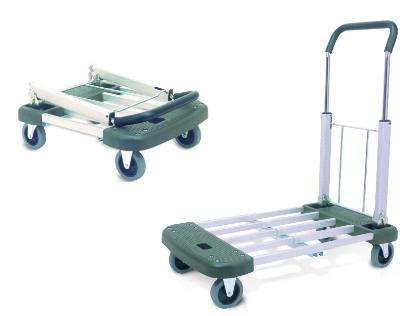 Use Push button to extend and fold-Won't hurt Your fingers. Adjustable handle/extendable base to suit different loads. PP Platform: Hitting-resistance, Cold-resistance, to protect aluminum cart from hitting. > Strong aluminum tube-won't become deformed or curved after long time loading. Extruded, non- rust aluminum alloy frame. Higher handle with soft foam meets human ergonomic and comfortable pull. |