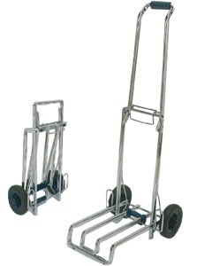 Tubular steel construction with Chrome plated: 2.55KGS Lightweight and ease your burden. Extended dimensions:460mm(L)x380mm(W)x990mm(H) Folded dimensions: 380mm(L)x170mm(W)x570mm(H) Fully collapsible with stretch cord. Folds down completely to stow away. Capacity: 40kgs |