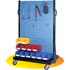 Hanger rack is strongly structured and easy assembled with capped screws. Perforated board and louvered board is available in KR, KL, AND KM Hanger rack. Full range of hooks and hanger case can be selected in perforated and louvered board. Hanger rack is made by 1.4m/m steel plate and painted with high quality bakes paint.