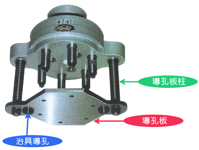 The fixed-type spindle head can have a guide plate added for special drilling; the guide plate can guide the bit to the correct position during work and thus prevent the bit slipping.