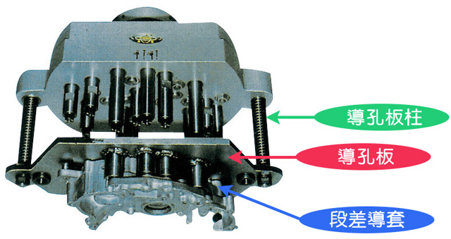 The fixed-type spindle head can have a guide plate added for special drilling; the guide plate can guide the bit to the correct position during work and thus prevent the bit slipping.