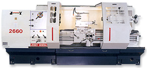 Very rigid, solid construction allows heavy duty machining Two grouped change levers for 16 spindle speeds in geometric progression selection from 10 to 1395 rpm. Standard "Matrix" mechanical multi-plate clutch & electric magnetic brake. "One-shot" lube pump on saddle provides excellent slideways central lubrication. Feed rod equipped with overload clutch for safety. Both axes rapid power feed fitted for quick positioning. Wedge nut cross slide backlash adjustment. Totally enclosed universal gearbox provides a comprehensive range of metric, withworth, M.P. & D.P. threads. Simple, fast, pull up engage, push down disengage, feed control lever. Front removable chip trolley allows easy chip cleaning. Main Spindle supported by three precision bearings. Leadscrew with full length steel cover. Rigid tailstock with two speed quill plus rack & handle positioning. VS model equipped with Yaskawa varispeed 616G7(15KW), high performance, low noise, general purpose vector inverters or equivalent. |