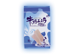 Three layers of milky flavor stuffing are clip in four layers of crispy wafer. Easy wafer is a masterpiece elegantly flavored. Fashionable in Hokkaido of Japan, it has become today's most stylish snack food. Product Name: HOKKAIDO MILK WAFER Packing: 10PCS/12BAGS/CTN PRE CTN N.W./KG: 1.03 Volume/MM: 485*210*233