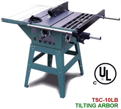 1 1/2 HP motor drive. A ruggedly constructed saw carriage for maximum cutting stability. Heavy precision machined trunnions ensure accurate saw tilt. The fence locks securely and precisely parallel to the sawblade. The steel saw blade guard provides added operator safety. Fitted with a key switch. The cast iron table is precision ground. Aluminum sliding table. Steel stand is standard. |