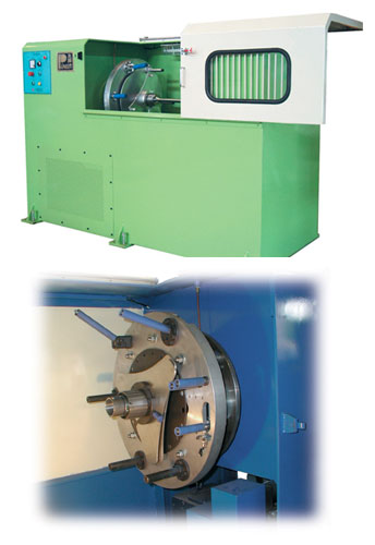 Concentric tapping with hysteresis pad tension control. For copper & aluminum foil and textil, PE and paperˇKnon-metal tape high speed helical tapping. Each tapping head and capstan are individual driven. MMI+PLC for lapping pitch, tape tension compensation control and speed synchronization control.