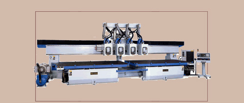 Four spindles, Four ATCs, Two tables. Working table 3050 x 1525mm x 2. Four drum type ATC. Tool magazine capacity of 8 tools, Tool change time of only ten seconds. Two table configuration eliminates the down time for parts changing, and allows for the machining of the same or different parts simultaneously. Suitable for machining complex parts and for mass production.