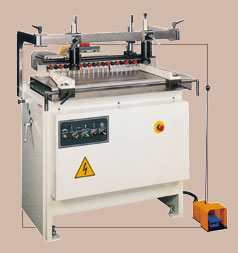 ĦEThe boring unit can be tilted manually for angular drilling. Entire boring cycle can be fast and conveniently accomplished by pressing on the foot switch. ĦEDrill feed speed can be conveniently adjusted on control panel. ĦEStandardly furnished with 27-spindle boring head(LB-27), or 35-spindle boring head(LB-35). ĦETwo fences provides convenient positioning of the workpiece. ĦEMechanical digital readous are proveded for each boring unit, providing accurate adjustment. ĦEThe speed stablizer is available. provieing smooth feeding against the workpiece. ĦEThe depth of drillng is controlled by six boring depths selector. ĦEFences:*Twofences are proveded for drilling small and big panels.*The rule gauge is equipped with 4 adjustable stoppers for repetitive drilling operations. ĦEThe rule gouge is set crosswisely for cross drilling operations. |