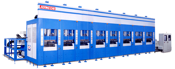 CLAMPING UNIT Extra large mold platen design permits for simultaneous production of 4 pairs of shoe sole on each station for increased productivity. Long mold open stroke provides convenient mold cleaning. Also ideal for big size product with easy product takeout. Each clamping unit is equipped with 4 sets P.I.D temperature controller, ensuring accurate heating and consistent product quality. Hydraulically operted mold clamping features automatic compensation of thickness variation between two molds.