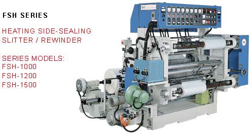 (1) The slitting and side sealing mechanism employs exclusive electrical resistor knives. Once power is on, the knives are instantly heated to the normal working temperature for immediate operation. (2) The cantilever (swing out) rewind and unwind shafts can be easily handled by a single operator. Length can be easily preset during operation. When the pre-set length is reached, the machine stops automatically. Tension can be adjusted during operation. Automatic tension controller is available. All motion controls are centralized on a control panel for convenient operations. Mechanical speed : 20-40m/min , 100m/min Unwind width: 1000, 1200, 1500mm Unwind diameter: 600mm(Max.) Rewind width: 50mm(Min.) Rewind diameter: 450mm(Max.) |