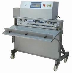 Heavy duty #304 stainless steel construction. Foot step start switch to help user start the packing cycle by foot. Suitable for bulk product. Busch vacuum pump. With 4 free caster, easier for user to move in anywhere. 220v/1ph/60hz.