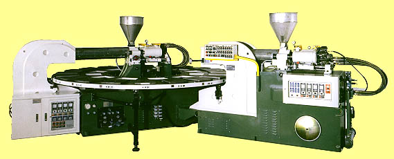 1. NSK-286-2C is controlled by P.L.C. accurately;smoothly and easy maintenance. 2. Independent hydraulic system;precise pressure, & high production capacity & top qualityproducts are available. 3. Unique design in clamping cylinder make strong clamping force,product without burr. 4. Firmed steel close-mould seat,It will never be deformed. 5.Steady disc control by hydraulic transition system,It will make the disc turn faster,set it exactly & without noise. 6. Clamping cylinder,Speedy high production & Will not damage the mould. 7. Screw rotation with hydraulic motor, Feeding smooth;speedy & soundless. 8. The machine specializes for making two colors,foaming or unfoaming products,Also can make one color products independently. 9. Hydraulin injection system : injects quantity accurately & high capacity. 10. Even a skilless worker can ooperate & maintain this machine easily. 11. Auto feeding system control by computer :Feed the material precisely & easy to adjust. 12. Auto computer scout system for disc's rotation : Locate accurately & without displacement. 13. Special design for feeding screw : Cause to a large quantity of production.