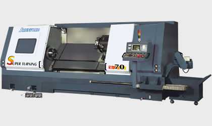 STANDARD ACCESSORIES: Coolant system Splash guard Through hole 3-jaw chuck Programmable hydraulic tailstock Chain type chip conveyor Tool box and various manuals Tool holders (direct mounting type) Auto lubrication with alarm Halogen working lamp