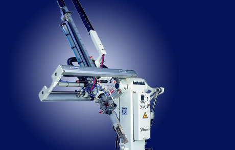 1. P Series is Swing-arm robots, with both single-stage arm and telescopic arm availableˇG Single Stage: Vertical Stroke 550/650mm availableˇAsuitable for flat-type injection moulding machine of below 150 tons; Telescopic: Vertical Stroke 650/750/850/950mm available, suitable forflat-type injection moulding machine of below 400 tons; 2. P Series is mainly applied to pick out sprue runner and product,it can swing the arm out of mould after holding the runner, and then move downwards till releasing it. This series is generally used to pick runners or simple & light product, since it has only simple function. 3. Full-function robots (denoted with "V")ˇAare attached with vacuum generator and standard end-of-arm suction tooling, but simple-function robots are not. All robots have the function of jaw-swing. 4. Main features and functionsˇG (1). Vertical arm comprises beam made of aluminium alloy and straight linear slide rails. It features ultra-rigid structure, and abrade-resist and no distortion, slight vibration, which ensures long lifetime. (2). The entire robot is built of alluminium alloy foundry castings, also completely modulised. (3). Easy to adjust the arm wristing angle, with no need to change the air pipe or switches, but a wrench is enough to do the work. (4). Convenient to change mould: The entire robot is rotatable, once you loosen the fixed device. (5). Hand-held controller system, with dialogue-mode interface display, in switchable language of Chinese/English. (6). Eight sets built-in programs and 12 sets tutorial programs, which are absolutely enough for any requirements. (7). With a memory capable to record 50 sets mould data, which assure easy operation & settings when changing mould. (8). Automatic fault-detect system can display the fault status in the panel, and record the error code by itself. (9). All I/O status can be displayed in manual mode, which assures easy repair work. (10). LED can display important signal status, like the safety door, MOP(Mould Open Position), EMC(Enable Mould Closure), and RJT, etc. (11). Output terminals can be connected externally, to conveyer or Off-mould Liquid Sprayer. (12). Values of timers or counters could be set or changed in Auto mode operation. (13). CE-compliant models, in conformity with EUROMAP/SPI standard, are available, also attached with standard interface.