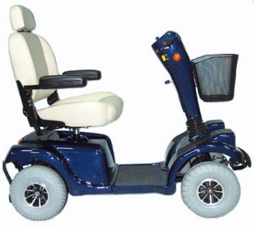 Infinitely adjustable tiller for driver comfort . Hi-Low speed switch for different speed range to suit your needs. Hi for 0 ~ 8 mph and Low for 0 ~ 4.35 mph . Soft-ride full suspension system, which features a total of four min-shocks . Dual microprocessor-based 110 amp controller system with advanced safety features . 22" wide superior comfort contour seat equipped with headrest, recliner and flip-up armrests . Convenient front basket and rearview mirror . Hand brake for emergency use . Rotational position and forward/backward positioning at the touch of a lever . Full directional lighting package with all-new front running lights . Exquisite all-new European styling . |