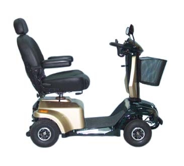 Infinitely adjustable tiller for driver comfort . Maximum speed up to 6.25 mph. On-board battery charger-charge it wherever you go; up to 25-mile range per battery charge . Soft-ride full suspension system, featuring a total of four mini-shocks. 22" wide superior comfort contour seat with headrest, recliner, and flip-up armrests . Convenient front basket and rearview mirror . Hand brake for emergency use . Rotational position and forward/backward positioning at the touch of a lever . |