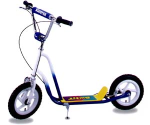 FRAME 12" SCOOTER, STEEL CO2 WELDED , FORK STEEL CO2 WELDED , HEAD PARTS STEEL 8 PCS, CP , HANDLEBAR POWER BAR,STEEL CP , STEM 4 BOLT STEEL CP W/ALLOY CAP , GRIP MUSHROOM, BLACK , BRAKE F/R CALIPER BRAKE , TIRE WHITE PLASTIC RIM W/AIR TIRE, BK , KICKSTAND CENTER TYPE, CP , FOOT BOARD P.P. PADS 2 PCS ON H/BAR AND STEM , CARTON 3 PLY EXPORTING CARTON , DECAL REGULAR ONE , PAINTING 2 TONES REGULAR , PACKING 50% ASSEMBLY . |