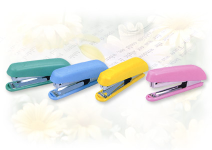 Used No.10 staples. Loads 100pcs No.10 staples. Color: light pink, light blue, light green and yellow. Packing: 1pc/box. Material : ABS .