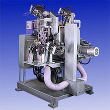 S-B53D Automatic Inside Spray Machine is built for three piece tin can production. One side sealed can bodies are fed into from two top can chutes, carried into two spraying stations by two timing screw and turrets. Two sets of NORDSON spraying guns undertake spraying job on each station; first gun for can wall spraying while second gun for can bottom. Spraying angle can be adjusted easily. |
