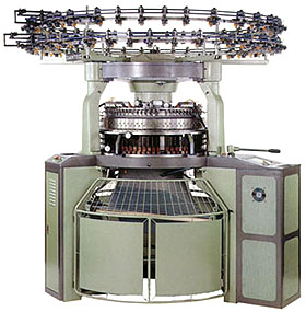 SIDE CREEL WITH RESERVE BOBBIN PINS. POSITVE MPF 40K1F/24V FEEDING. NEEDLE LUBRICATION BY AUTOMATIC SPRAY OIL (TAIWAN BRAND) . DIAL EXCHANGE CAMS FOR 2 NEEDLE TRACKS FOR POSITIONS KNIT AND MISS. FEEDERS IN A COMMON RING FOR EASY ADJUSTMENT, EACH FEEDER HAVING TWO YARN GUIDE HOLES. FREQUENCY CONTROLLED DRIVE (AC). 120-SECTION CLOTH WINDER OF ROUND WEAVING MACHINE. |