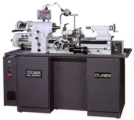 280mm (11") Swing over bed. 457mm (18") Distance between centers. Dual range Inch/Metric quick change gearbox. Infinitely variable spindle speeds from 0-4000 RPM Full bearing carriage with Turcite-B slideway bearing material between carriage and bed. The spindle is mounted in high precision preloaded angular contact ball bearings eliminating radial and end play. Fast lever collet chucking with a single movement. Independent infinitely variable feeds produce accurate cuts with efficient chip removal, and smooth surface finish. Quick change gear box for easy precision threading. Automatic thread length control with fine adjustable stops provides for accurate threading without thread relief. Quick-action tool post slide for threading is instantly cleared from the work for a carriage return. The specially designed bed ways are made of hardened and ground alloy, tool steel that resist wear. The angular guide ways allow chips to fall in the chip tray. |