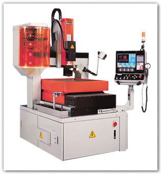 Automatic brass-tube (30-unit) change. Automatic brass-tube devition correcting. Direct readout of the G code of NC wire-cut program and automatic readout of start-cutting point and guide of fine-hole drilling point. Automatic edge and center finding. |