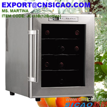 ITEM NO.: JC-65B Description: 1) Cooling system: thermoelectric cooling 2) Product Dimensions (WxHxD): 460x735x540mm 3) Volume: 65Litres hold 28 bottles 4) Rated voltage: AC 110 / 220V 5) Input power: 70W 6) Rated frequency: 50 / 60Hz 7) Power consumption: 0.8kWH/24h 8) Refrigeration temperature: 10 - 18'C (Working under Environmental temp.10 - 32'C) 9) Noise: <15dB
