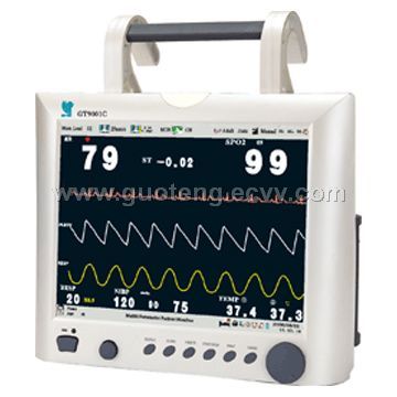 Features: 1) Standard configuration: ECG, RESP, NIBP, SpO2, TEMP, HR 2) Built-in re-charged battery: for use of over 2 hours 3) 12.1" color TFT LCD 4) Nine waveforms; nine operation interfaces 5) ST segment analysis; analysis on 23 kinds of basic arrhythmia; 60-minutes recent ECG waveforms playback; 6) Simultaneous 7-Lead ECG display 7) Dynamic RESP oxygenation combined graphics inspection 8) Drug calculation 9) Cut-off power protection; 30-day trends data and waveforms storage list; 2,880 groups of blood pressure data storage 10) Digital SPO2 soft fingertip measurement technology, anti-shock, anti-interference, anti-low temperature, low-flow, anti-knock and anti-bump 11) Anti-HF electronic surgical unit and anti-defibrillation, for monitoring in surgery or for cardiac care 12) Available to connect with central monitor system
