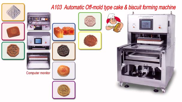 automatic off-mold type cake & biscuit forming machine 1.Suitable for mass production, roughly, forming cycle for one tray is complete within 20 seconds, i.e. the production rate is about 3 trays/min. 2.Reducing labor cost significantly. 3.Avoiding muscle fatigue Caused by manual forming operation. 4.Multi-functional, multi-purpose machines. 5.Easy to operate, Saving tremendous training expeuse. 6.Mold is easy to replaced. 7.Capable to make variety products, special molds and products are available upon requested. 8.Due to cakes are directly placed on tray once forming is done, it can avoid cake deformation risk caused by movement accideutly. 9.Providing tailor-made mold packages which can meet customers¡¦ unique demend. 10.Safety operation. |
