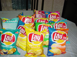 Packing size : 21 gram pr. bag. Bags pr. carton :120 bags. Carton size : 72 x 33 x 47,1 cm. Amount of cartons pr. 40 foot Container (High cube) : 600 Cartons Tastes avalible : Riged Potato chips original .Barberque,Extra Barberque,seaweed,sourcream & onion, scrimp,chili. Expiry date and production date listed, shelvlife 6 month. Sticker in any lanquage avalible on request, for the Ingredientlist /Nutrition facts. Design 50 % english 50 % thai. Price pr. carton FOB bangkok