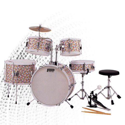 5PCS JUNIOR DRUM SET Bass drum: 16"x10" -6 lugs with TH-28E/SET tom holder set, with white coated bass drum hoops Tom: 8"x6" -4 lugs 10"x6" -4 lugs Floor tom: 13"x9" -6 lugs Snare Drum: 12"x5 1/2 " -6 lugs (wooden) Drum hoops: with white coated With 10 " cymbal, cymbal holder, hi-hat stand, snare stand, pedal, Drum throne & drum sticks |