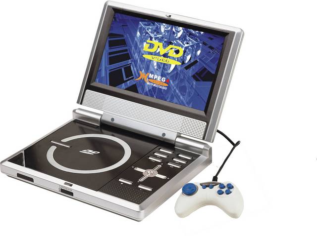 * 7" 16:9 LG color TFT-LCD Panel * Built-in Rechargeable Battery * Play Up DivX 3.1 VERSION,MPEG 4,DVD, VCD, MP3, WMA, NES , JPG files * Super strong electronics anti shock * USB1.1 Port for Card Reader * Game function * Wide DC Volt Input (7V ~ 15 V) * DVD OSD with 6 languages * Open 180 ?for using inside Car * Unit Size: 195*149*31mm
