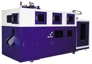 PREFORMS LOADING SYSTEM : Preforms are fed into and fixed on the sockets by robot structure with accuracy and quickly & little spaces. OVEN HEATING SYSTEM : A straight-through oven heating zone is used for infrared ray heating lamps combined with rotating mechanism ensures uniform heating for preforms. These heating lamps are adjustable in upward/downward and forward / backward depend on perform various and shapes for bottles. PREFORMS CONVEYING SYSTEM : Preforms conveying combined with cooling mechanism enables bottle mouth quality keep rigid shape without deformation after heating. CLAMPING MOLD SYSTEM : The mold clamping is operated by toggle mechanism and combined with hydraulic system for driving fixed position with accuracy and quickly. MOLD ADJUSTMENT can be done at short time ensuring high efficient, hence, this machine could be suited to a wide variety of products even low capacity production. PRODUCT DISCHARGE has a simple structure and low-damaged. |