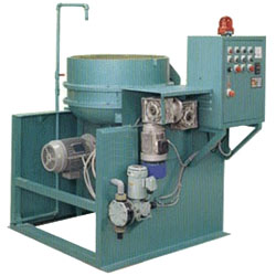 1. Seal design accommodates a wide variety of parts and media sizes. 2. Choice of smooth or ribbed polyurethane lining. 3. Power separation of parts, media and fines. 4. P.C. control panel with process timer and hour meter. 5. 1800 P.R.M., 220~460V, 3PHASE, 50/60 HZ main drive motor. 6. Helical bevel gear box. 7. Electrically controlled compound solution system with water flow meter and flow control processing and shutdown functions. |