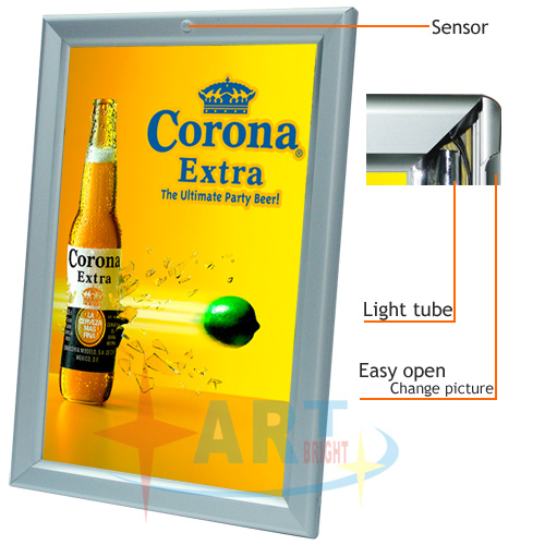 Characteristics: 1) Even luminescence, soft light 2) Silver-gray aluminum frame, simple and elegant appearance 3) Extreme thin: 2.8cm 4) Low power consumption: 60% less than traditional light box 5) Easy to assemble and maintain 6) Low heat generation: light panel doesn’t generate heat by itself, that avoids the heating to the AD print and rapid aging of AD print 7) Long longevity of lighting tubes: up to 12,000 hours Specification: 500X360, 600X420, 800X600, 950X700, 1150X1000, 1250X900, 1550X1000mm Use:business center, supermarket, bank, chain operation store, restaurant, airport, station, underground, ferry dock, autobus platform, wedding photo, big exhibition project.