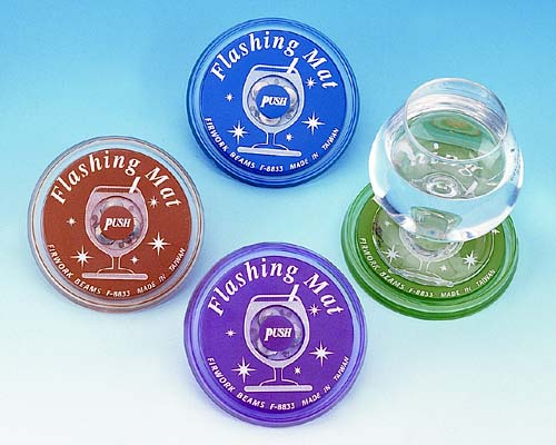 1) Push and flashig, and light up cup. 2) 3 led : red, green, yellow 3) Coaster color : red, blue, orange, green 4) Diameter : 9.8cm, 1.1cm (h) Packing : 1pc/opp pack, 24pcs/box, 192pcs/carton N.W. 16.3kg, G.W. 18kg 46.7 x 29.2 x 25/ cm